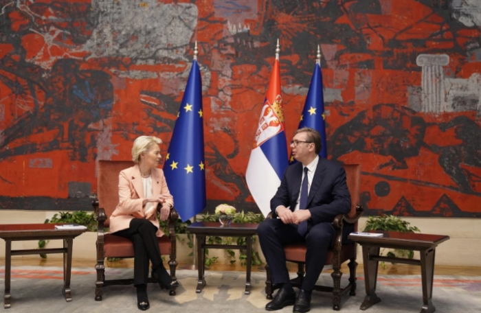 „Нагласивме дека проширувањето е геостратешки императив, како и потребата Србија повеќе да се усогласи со надворешната и безбедносната политика на ЕУ. Исто така, ги поздравивме чекорите на Србија за диверзификација на изворите и рутите за снабдување со енергенси и за намалување на зависноста од Русија, чија несигурност е постојано демонстрирана“, објавија Фон дер Лајен и Кошта.