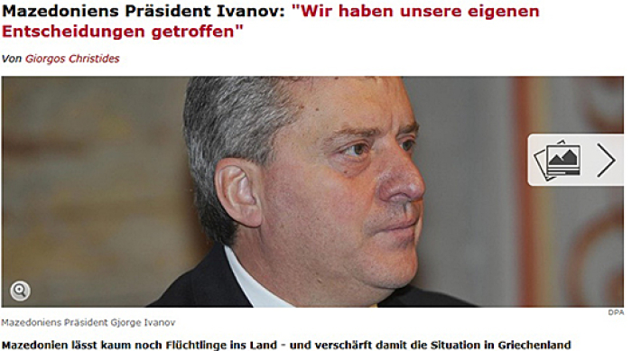 - Соработката со Грција мора да се интензивира. Грција со право реагира што не е поканета на состаноците. Ова е проблем на целиот континент, а не само на ЕУ. Ние не сме земја членка на ЕУ, но сепак, правиме се како дел од европското решение, изјави претседателот Иванов во интервјуто за германскиот медиум.