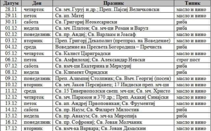 На 28-ми ноември започнуваат Божиќните пости кои траат 40 денови, пред големиот празник Рождеството Христово Божик, на 7-ми јануари. Денешниот ден, 27 ноември, се нарекува уште божикни поклади. Овој ден е и денот на споменот на Апостол Филип.