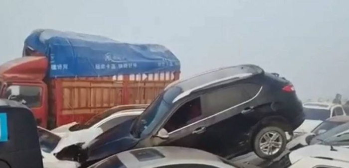 До оваа несреќа дошло поради слаба видливост од магла, јавија државните медиуми, и голем дел од повредените останале заробени во своите возила.
