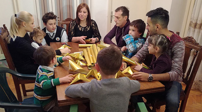 Во семејниот дом на Даниела Секуловска, која веќе неколку години изработува Божикни ѕвезди за децата што ги предводат бадниковите поворки, се организираше мини работилница во која се вклучија Викторија Лоба, Дејан Лилиќ и Филип Божиновски.
