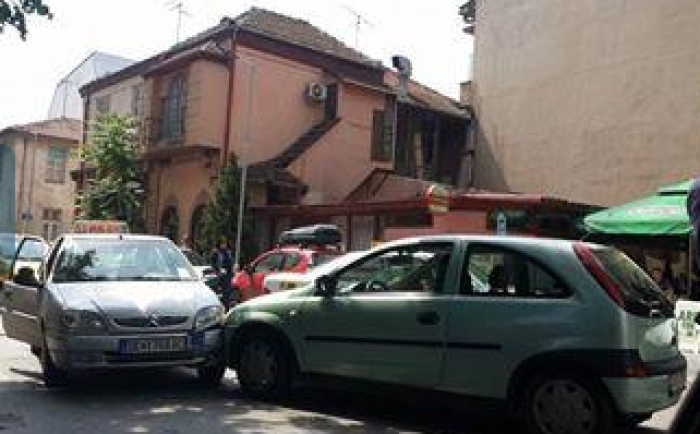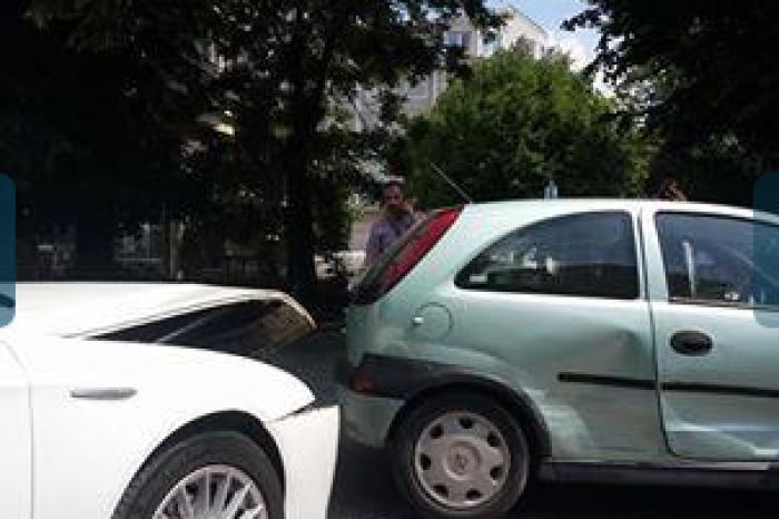 Три автомобили предмалку се судрија на улицата Ленинова во Скопје. Едниот од автомобилите е на авто-школа.
